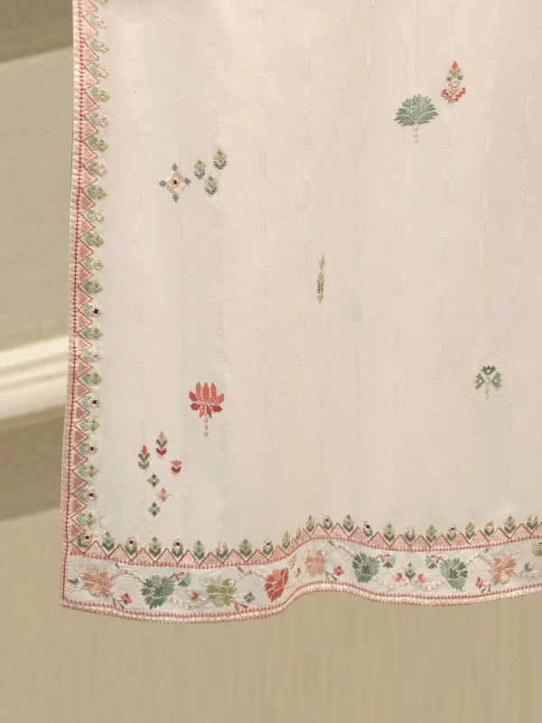 Add a touch of sophistication to your wardrobe with this embroidered jacquard shirt paired with a kora cotton dupatta. Perfect for both festive and casual occasions, this ensemble blends comfort, elegance, and timeless style.