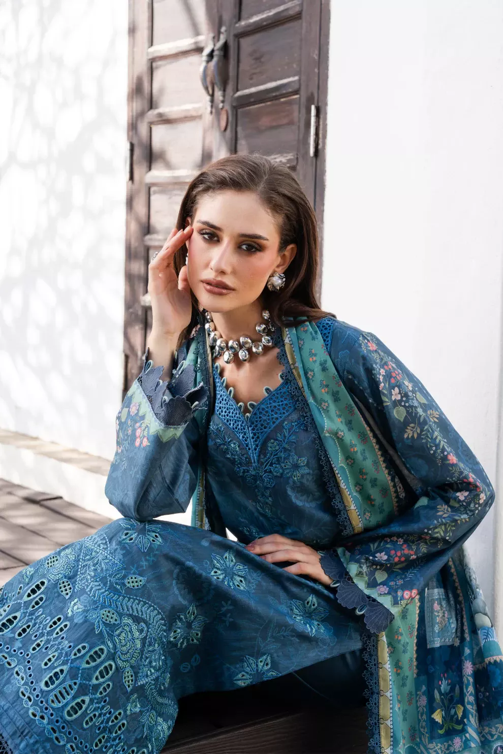 • Ready To Wear Printed Voil Dupatta With 4 Sided Schiffli Lace