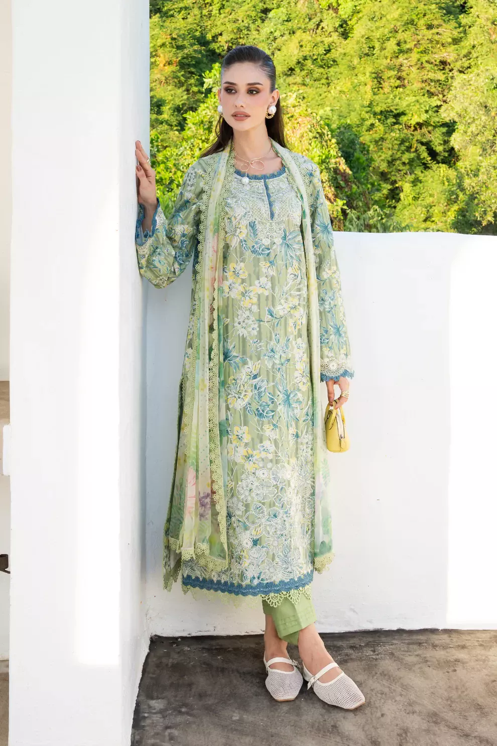 • Chikankari Embroidered Printed Lawn Front
