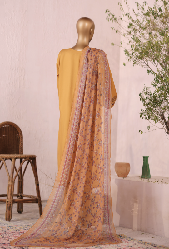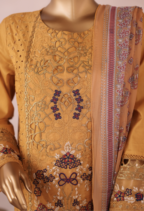 Bin Saeed Stitched Exclusive Plain Cotton 3 Piece | M.Yellow