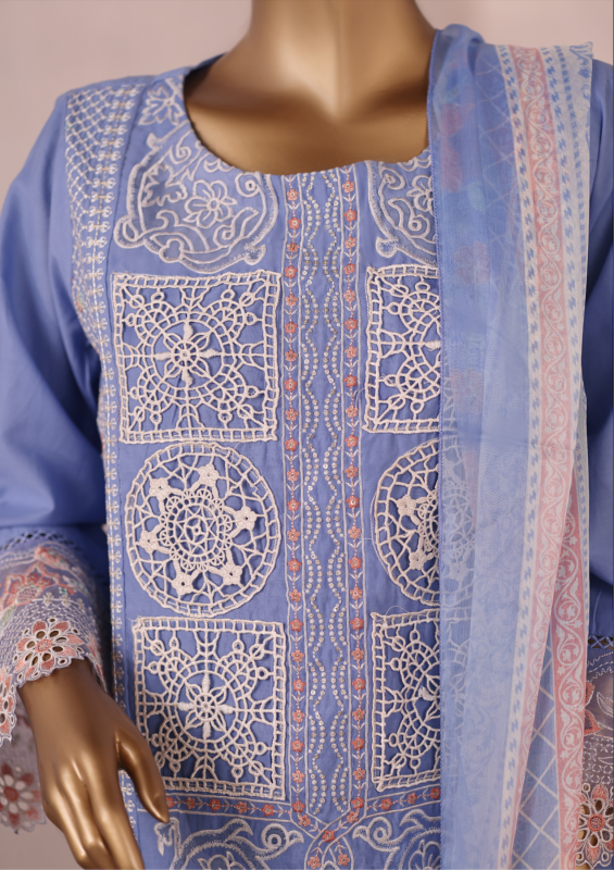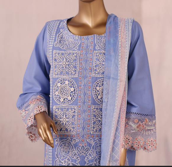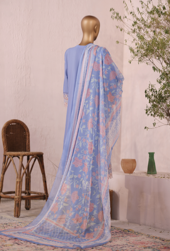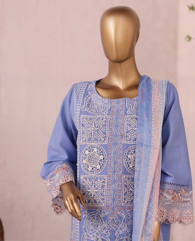 Bin Saeed Stitched Exclusive Plain Cotton 3 Piece | S.Blue