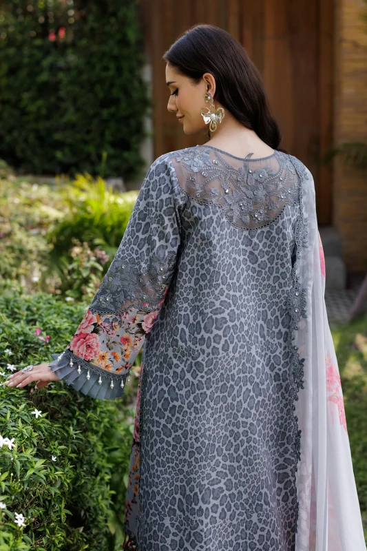 Delicate embroideries bloom across soft, breathable lawn fabric, creating a stunning balance between heritage charm and contemporary grace. The ensemble features exquisite detailing and intricate threadwork, complemented by an elegantly embroidered chiffon dupatta that enhances its refined look.