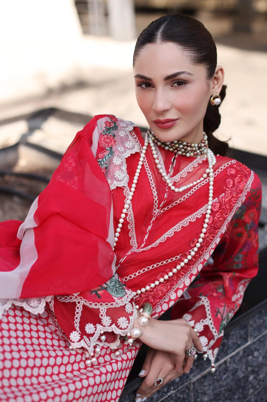 Rich combination of embroidered & printed Swiss Lawn gives texture, visual interest, and elegance.