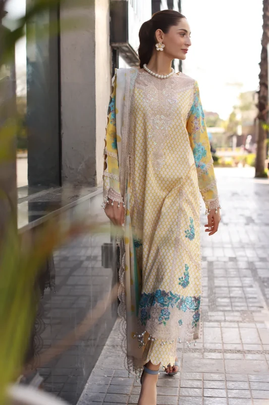 The CSM25‑04 collection showcases a harmonious blend of traditional embroidery and contemporary prints. The Swiss Lawn fabric ensures breathability and comfort, making it ideal for warm weather. The embroidered elements add a touch of elegance, suitable for various occasions.