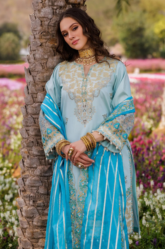 Our Jacquard Lawn Festive Edit showcases airy textures, detailed embroideries, and a soothing summer palette perfect for Eid festivities with a modern yet cultural appeal.