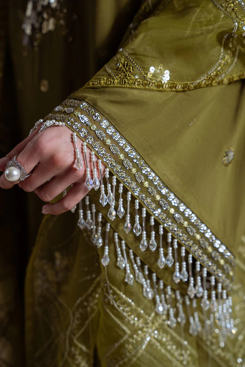 SHIRT Silk embroidered front, back and sleeves 200" embroidered patti for front, back and sides 40" embroidered patti for sleeves TROUSER Silk dyed trouser DUPATTA Organza embroidered dupatta