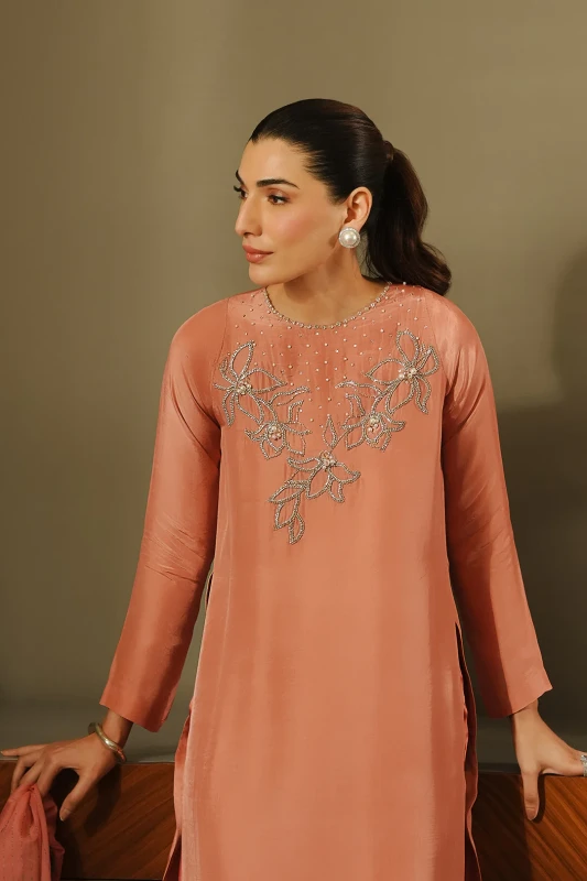 • This elegant long top in soft silk fabric is detailed with floral crystal embellishment, crystal spray, and a crystal embellished neckline. Designed with full-length raglan sleeves, hook & eye closure at the back and side slits. Lined with soft viscose fabric to ensure added softness.