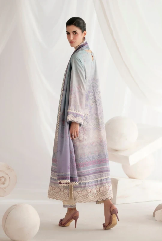 A sophisticated unstitched silk ensemble featuring stunning digital prints and exquisite embroidery — the perfect blend of elegance and timeless charm.