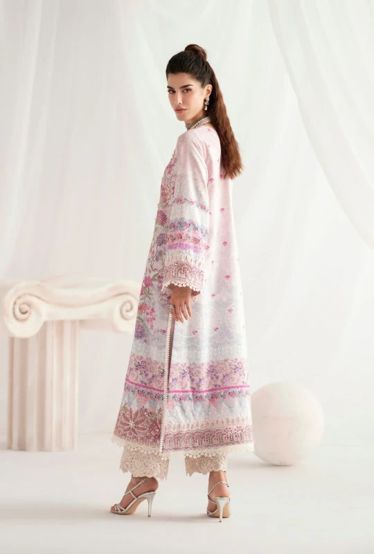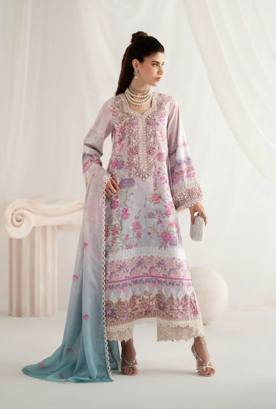 A sophisticated unstitched silk ensemble featuring stunning digital prints and exquisite embroidery — the perfect blend of elegance and timeless charm.