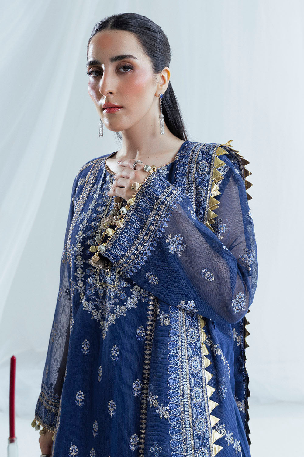 • Embroidered Cotton Net Dupatta. - 2.5 Meters