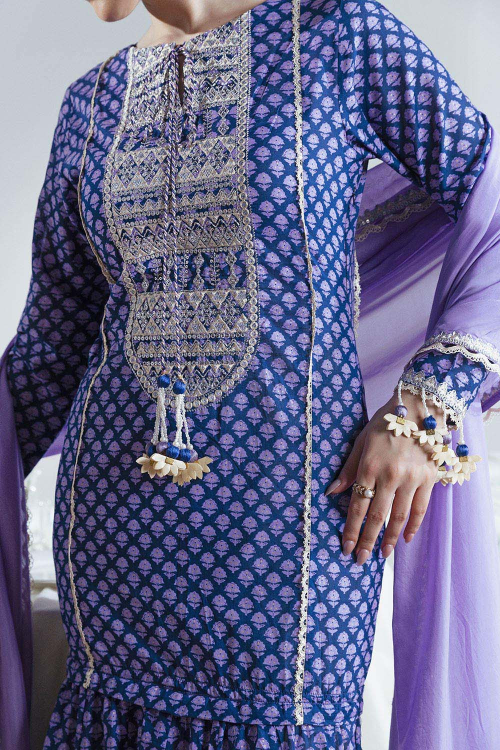 • Embroidered Gold Printed Trouser. 1.75 Meters