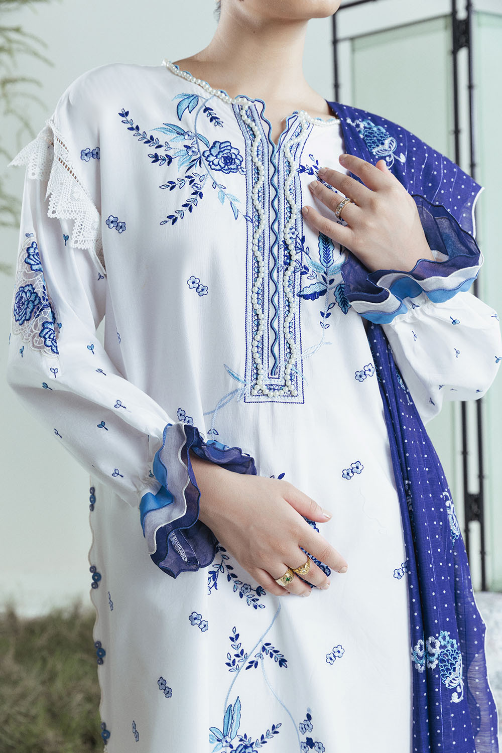 • Embroidered Lawn Shirt Front & Sleeves with Embroidered Borders on Organza. Embroidered Bunches for Front & Sleeves on Organza. Dyed Lawn Back - 2.53 Meters
