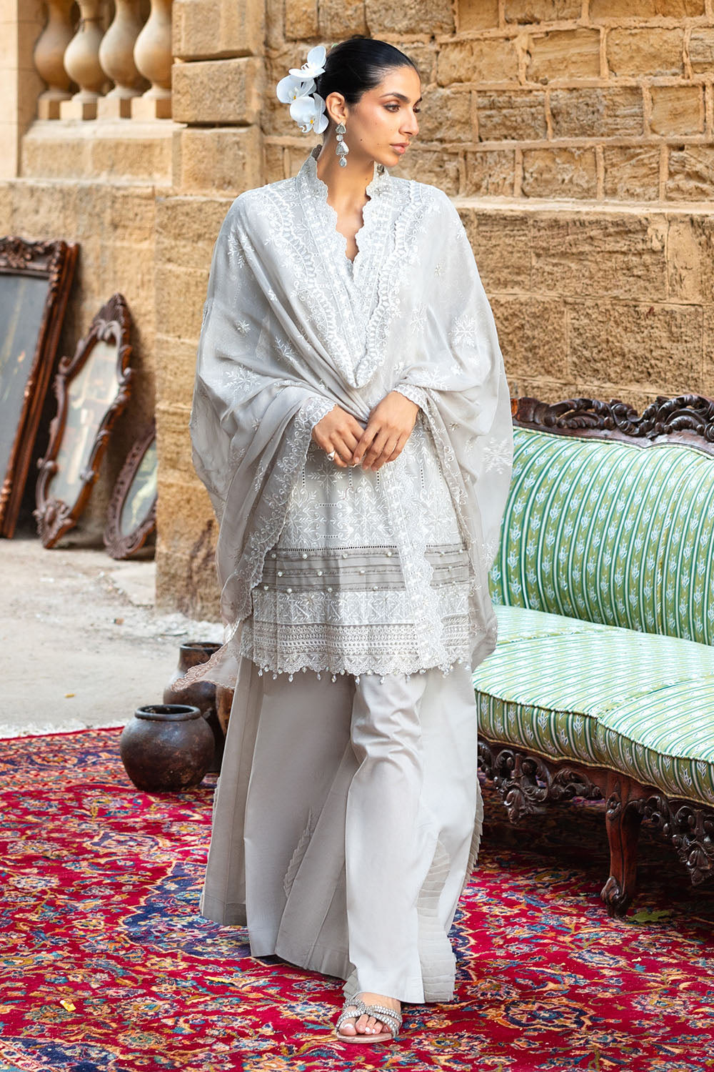 • Embroidered Lawn Shirt Front & Sleeves with Embroidered Borders for Front & Back. Dyed Lawn Back - 2.78 Meters