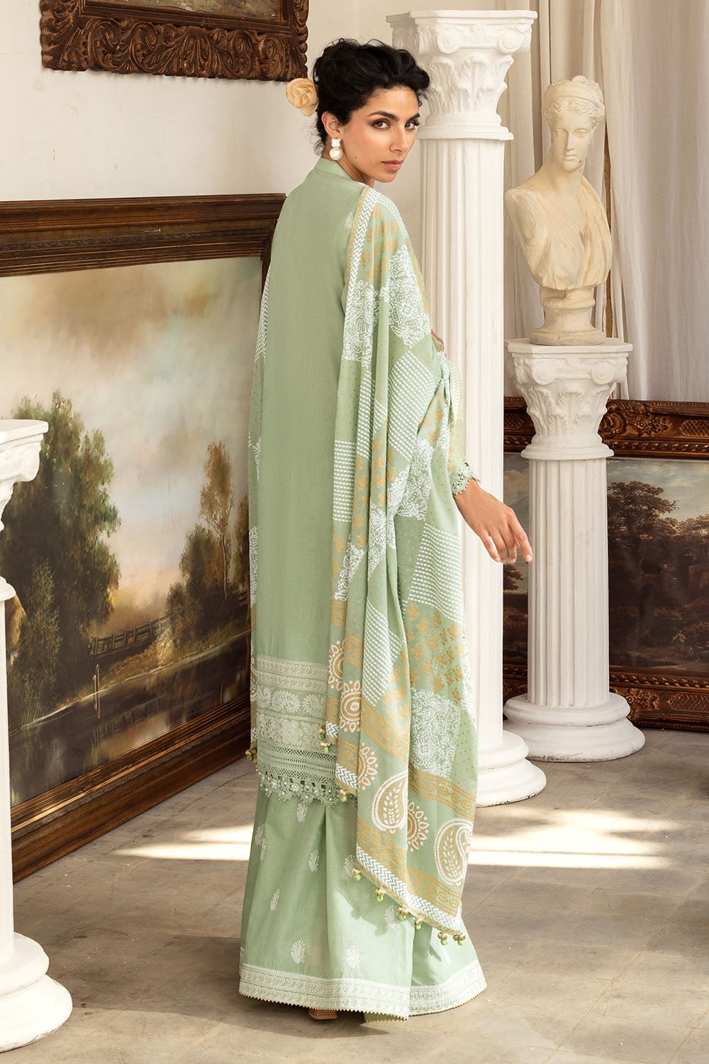 • Zari & Sequins Embroidered Lawn Shirt Front, Back & Sleeves - 2.35 Meters