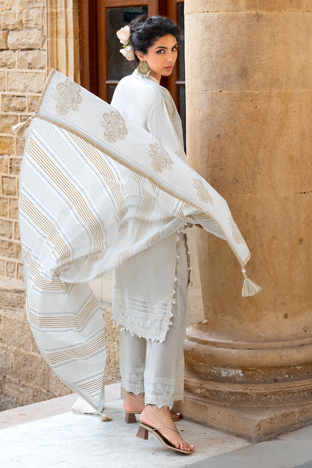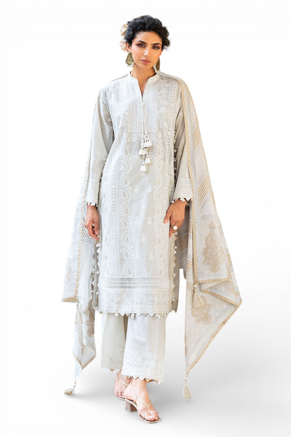 • Zari & Sequins Embroidered Lawn Shirt Front, Back & Sleeves - 2.35 Meters