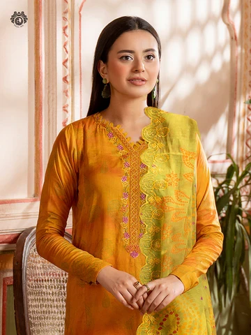Experience effortless elegance with this 3-piece unstitched digital printed lawn ensemble, beautifully accented with embroidered organza details and a cut-work dupatta — a perfect blend of style and comfort for any occasion.