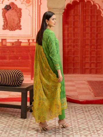 Experience effortless elegance with this 3-piece unstitched digital printed lawn ensemble, beautifully accented with embroidered organza details and a cut-work dupatta — a perfect blend of style and comfort for any occasion.