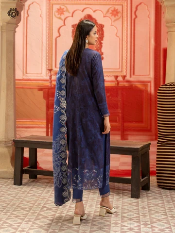 Experience effortless elegance with this 3-piece unstitched digital printed lawn ensemble, beautifully accented with embroidered organza details and a cut-work dupatta — a perfect blend of style and comfort for any occasion.