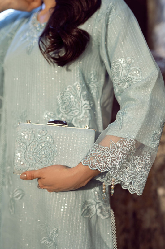 Organza 3-Piece Embroidered Suit with Clutch