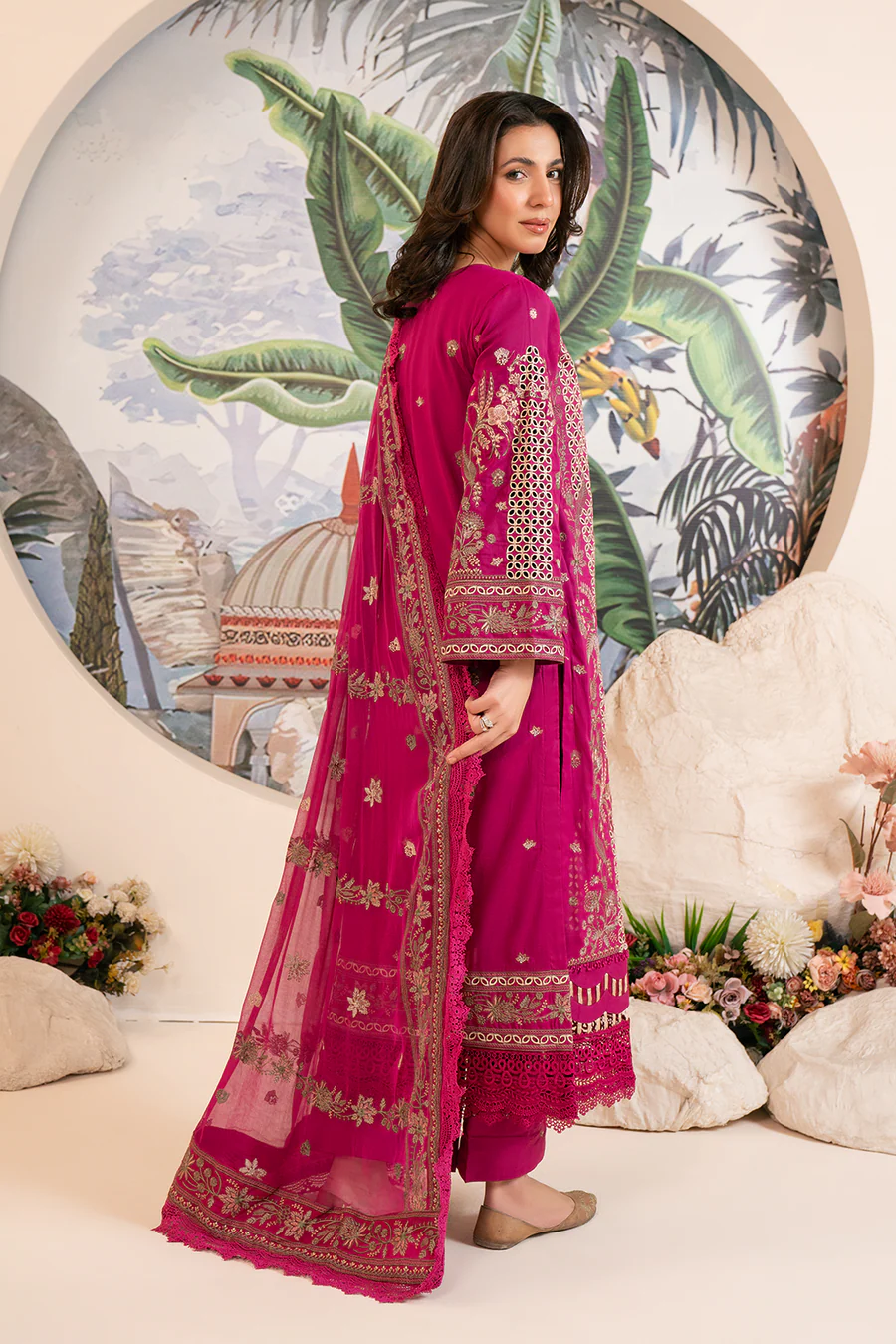Description: EMBROIDERED SWISS WITH EMBROIDERED CHIFFON DUPATTA