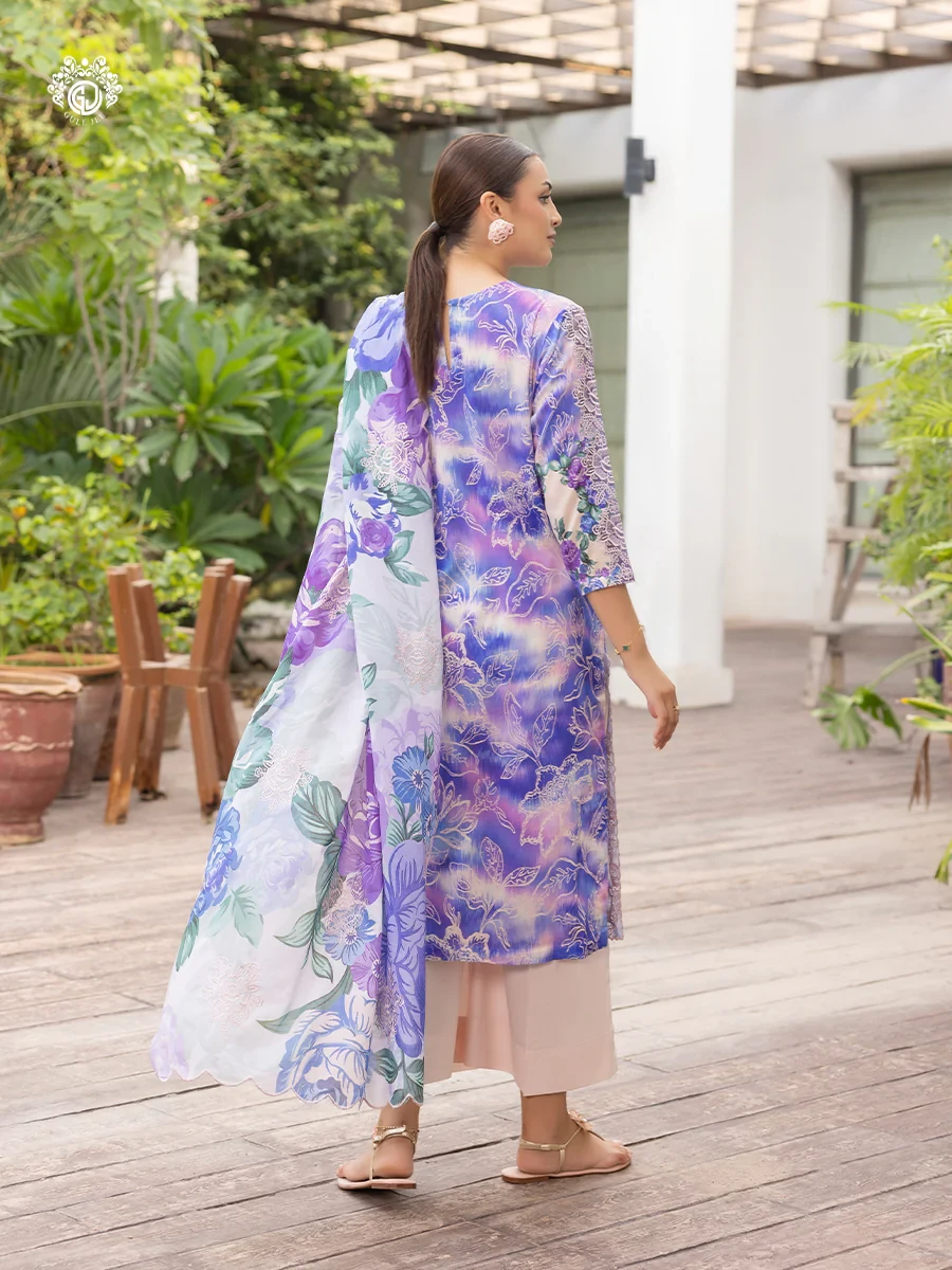 Elevate your style with this beautifully crafted three-piece suit featuring digital prints and intricate organza embroidery — perfect for any occasion.