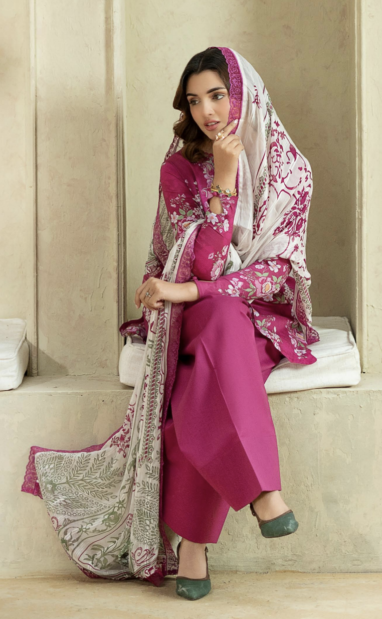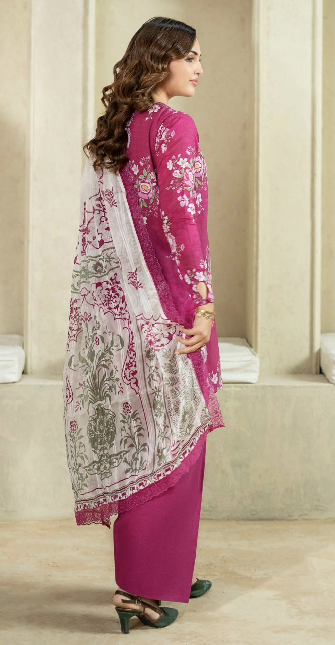 Digital printed Bamber Chiffon Dupatta with 4-sided embroidered lace.