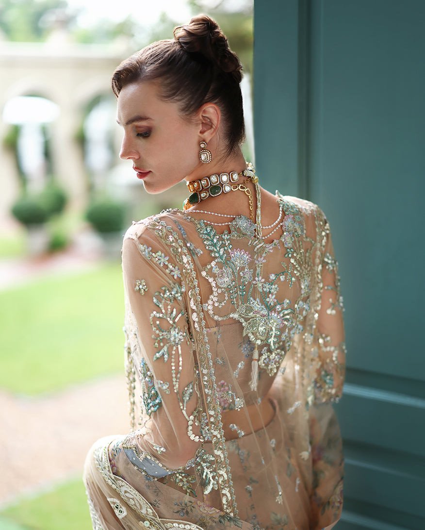 • Embroidered, sequined & hand embellished front daman border (organza)