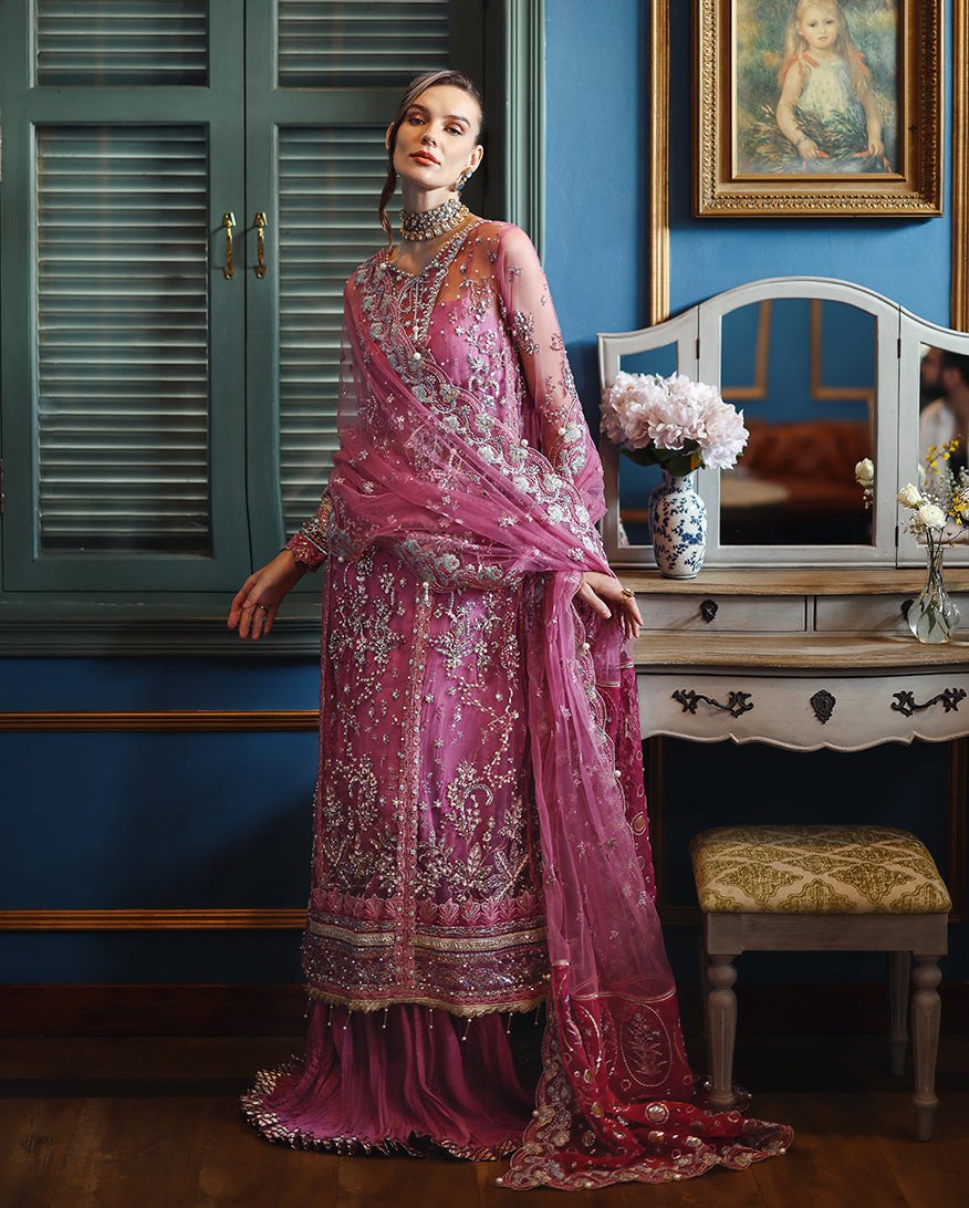 • Embroidered, sequined & pearl embellished front daman border (organza)