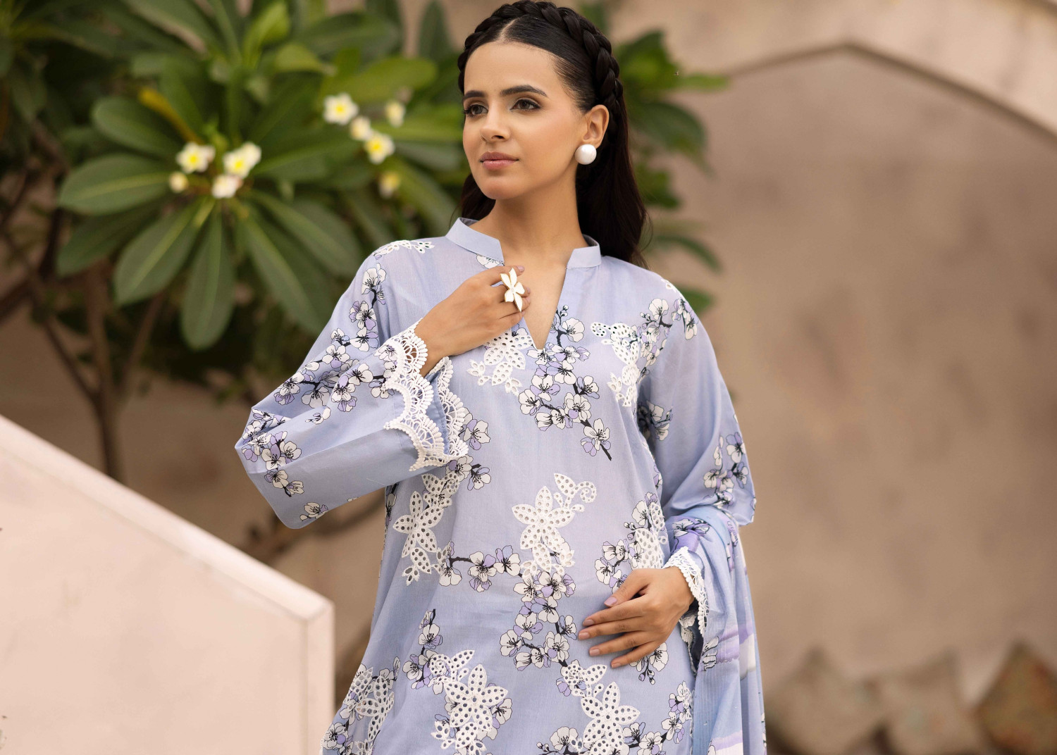 • Sleeves: Printed Lawn with Embroidered Lace Detailing