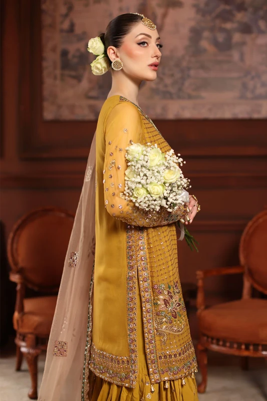 • EMBROIDERED AND HAND EMBELLISHED CHIFFON FRONT