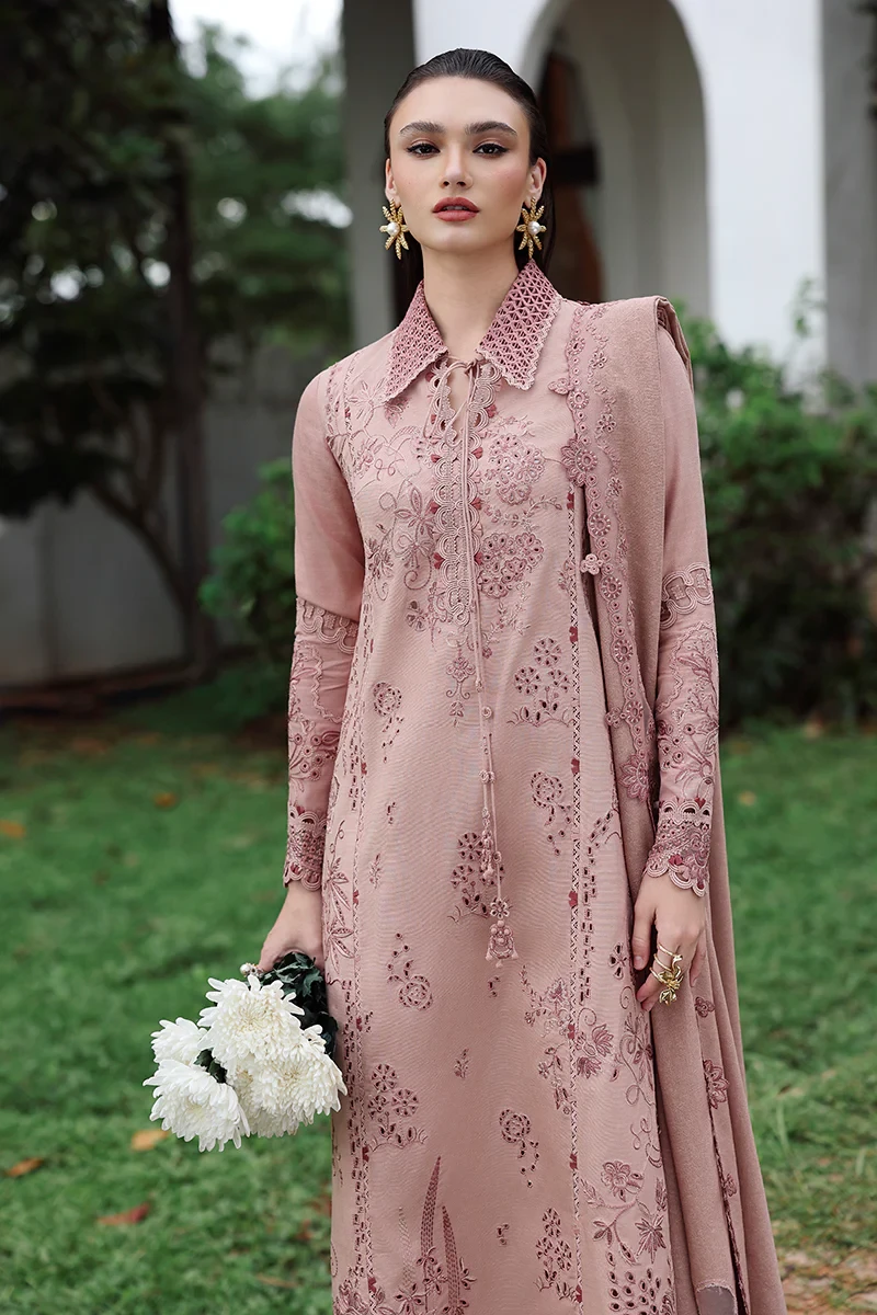 A beautifully detailed embroidered linen ensemble featuring intricate Chikankari work and a delicately embellished chiffon dupatta — the perfect blend of grace, tradition, and modern sophistication.