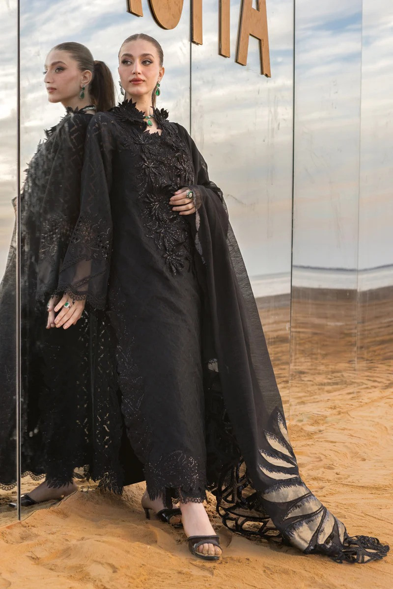 Dyed Organza Embroidered Front + Back Daman 4 Pieces