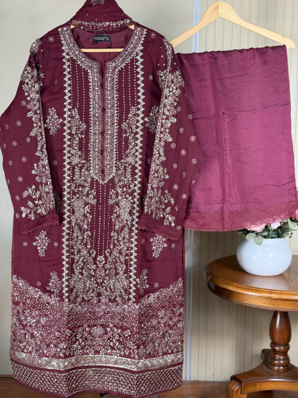 SADA BAHAR AFS STITCHED 3PC | MARROM