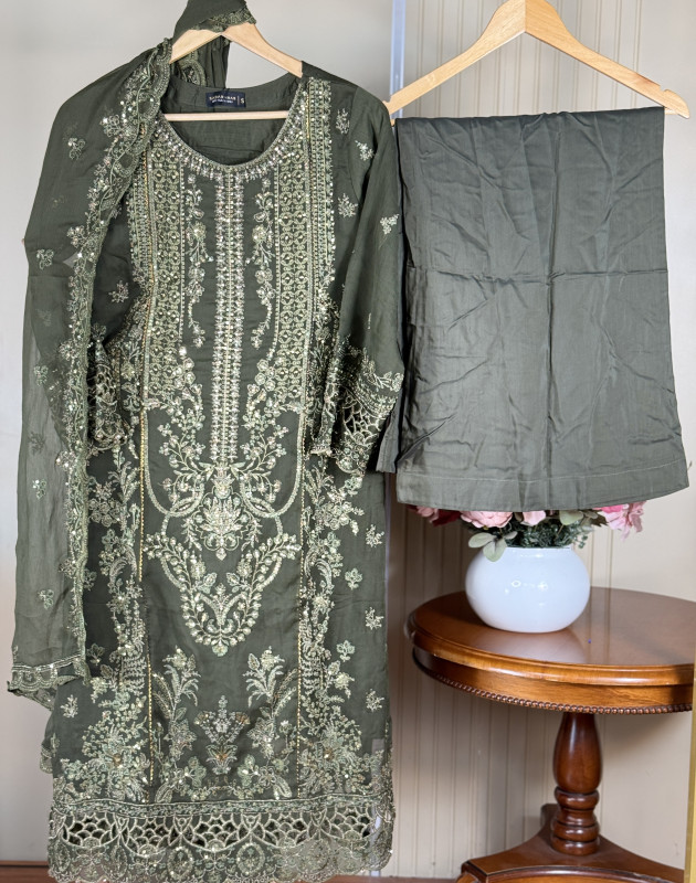 SADA BAHAR AFS STITCHED 3PC | OLILVE