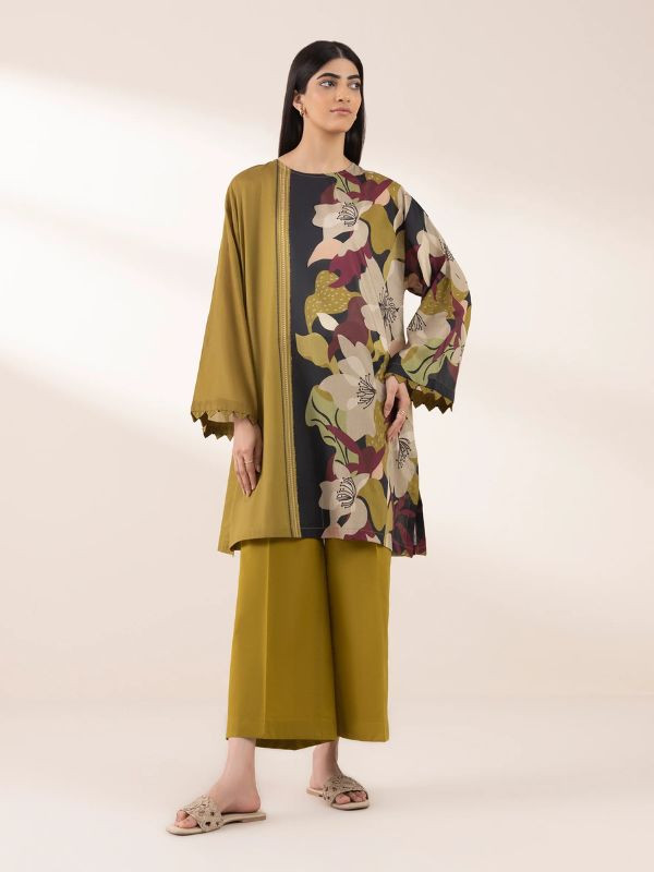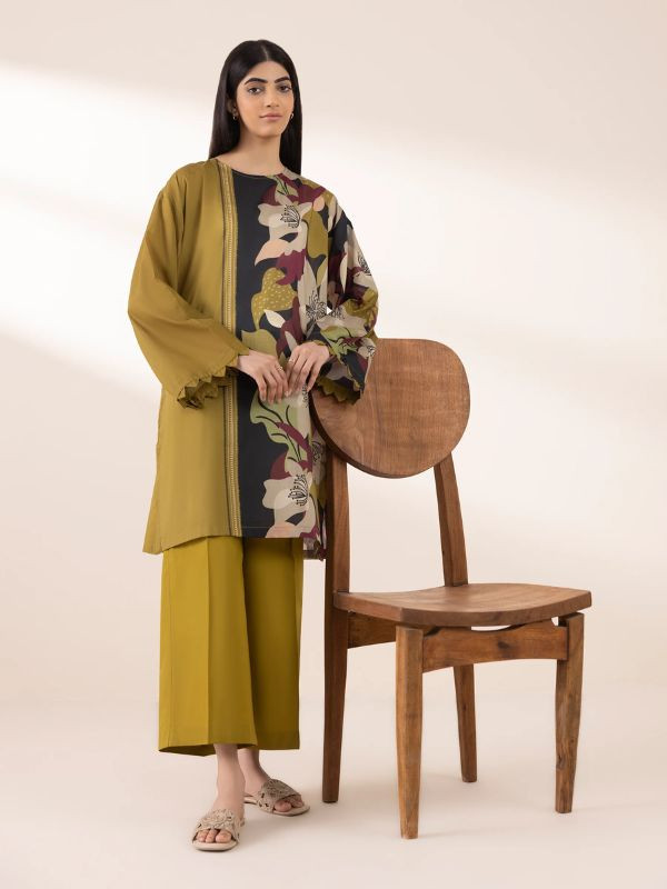 This printed green lawn boxy shirt from Sapphire's Ready-to-Wear Pre-Fall '25 collection offers a contemporary silhouette with a relaxed fit. Crafted from breathable lawn fabric, it features a round neckline and full-length sleeves, making it suitable for both casual and semi-formal occasions. The vibrant green print adds a touch of elegance to your wardrobe.