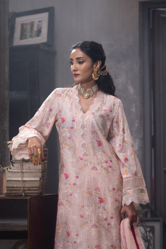 Step into elegance with the SHEHZADI Embroidered Lawn ensemble, featuring exquisite embroidery on premium lawn fabric and a beautifully crafted embroidered chiffon dupatta — perfect for timeless sophistication.