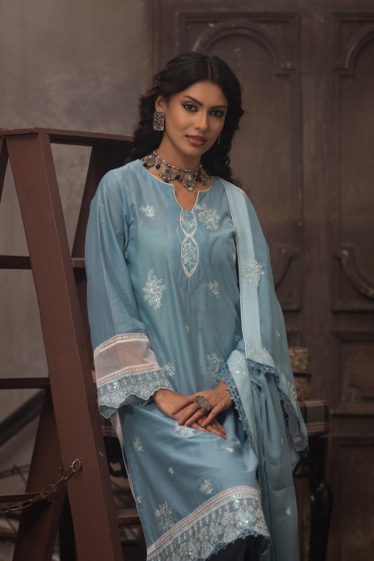 Step into elegance with the SHEHZADI Embroidered Lawn ensemble, featuring exquisite embroidery on premium lawn fabric and a beautifully crafted embroidered chiffon dupatta — perfect for timeless sophistication.