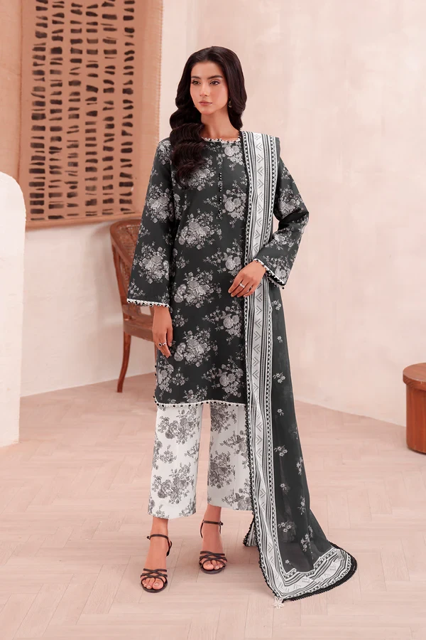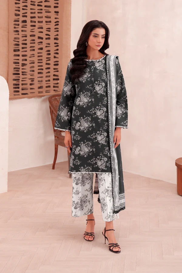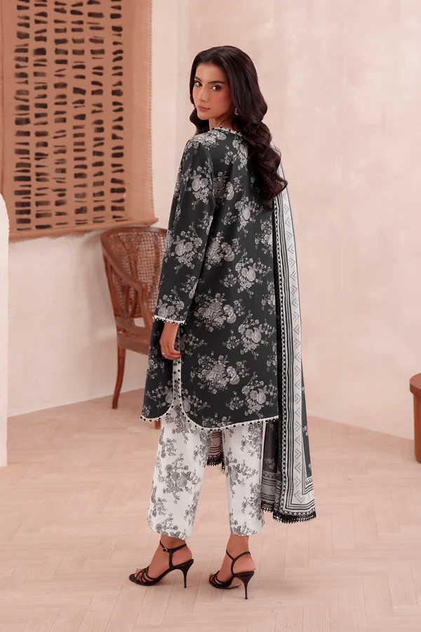 This set includes a digitally printed shirt, dupatta, and trouser, combining comfort and style — a must-have addition to your lawn collection.