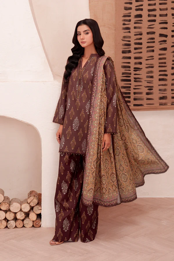 This set includes a digitally printed shirt, dupatta, and trouser, combining comfort and style — a must-have addition to your lawn collection.