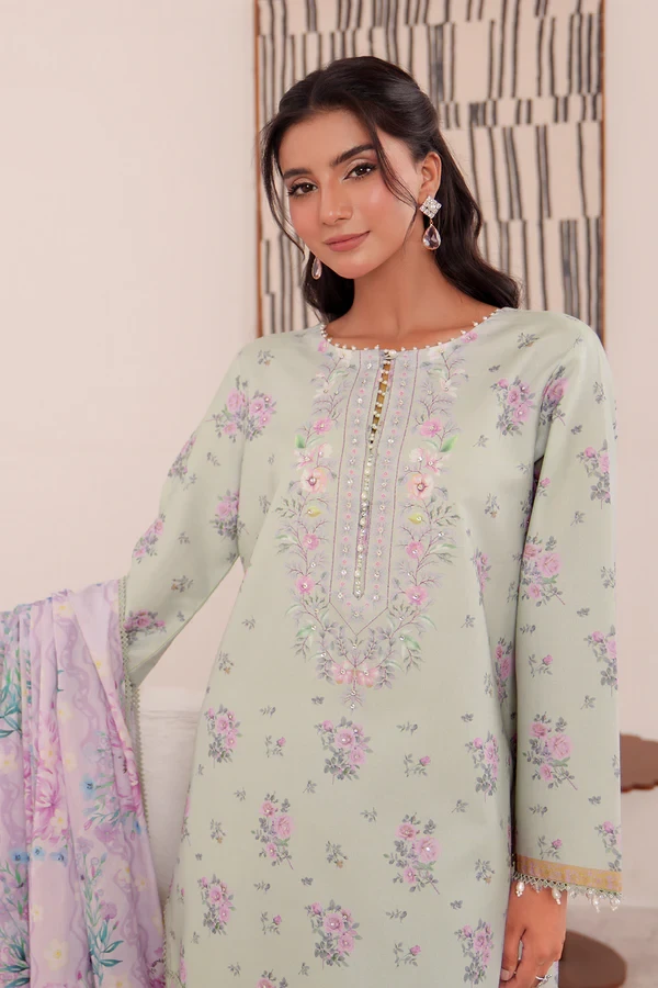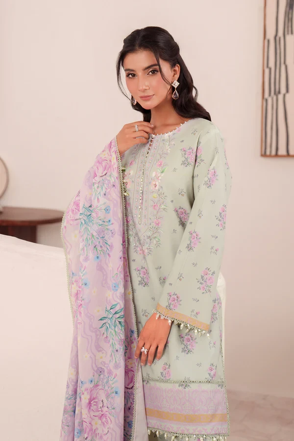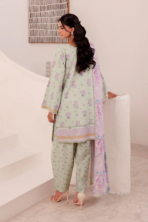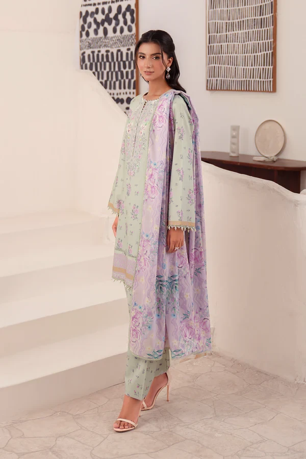 This set includes a digitally printed shirt, dupatta, and trouser, combining comfort and style — a must-have addition to your lawn collection.