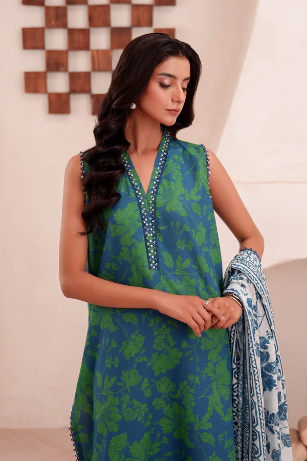 This set includes a digitally printed shirt, dupatta, and trouser, combining comfort and style — a must-have addition to your lawn collection.