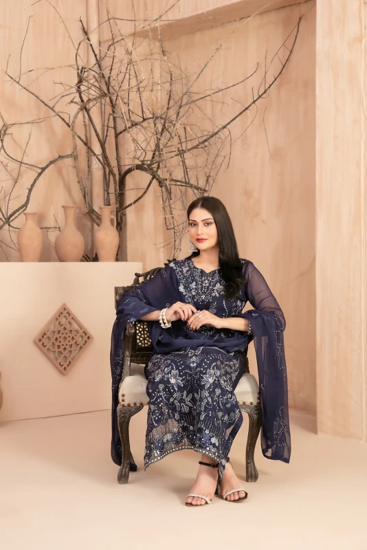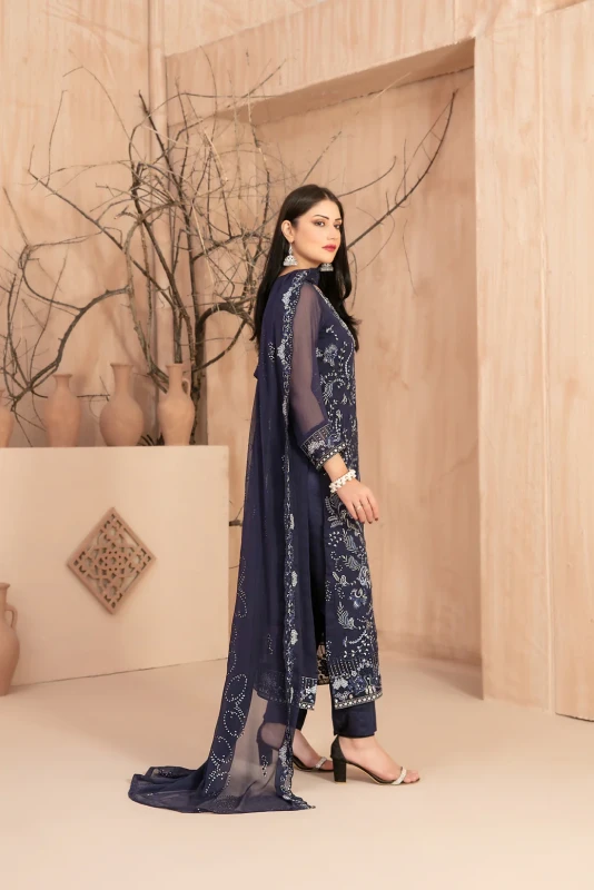 Semi-Stitched Fancy Embroidered Chiffon Shirt Designs with embellishments