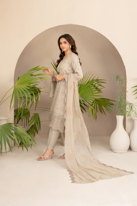 • Un-Stitched Jaal + Daman Embroidered Boti Broshia Lawn Shirt Designs
