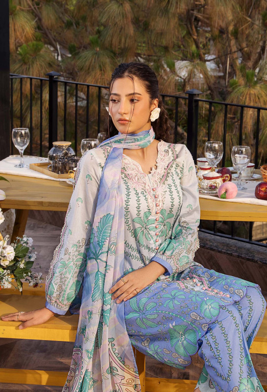 Step into vibrant elegance with PRINTS 2030 — a semi-stitched three-piece set featuring a digitally printed lawn shirt, matching cotton trouser, and a luxe silk dupatta. Comes with embroidered accessories to complete the look. Great for adding color and grace to your wardrobe.